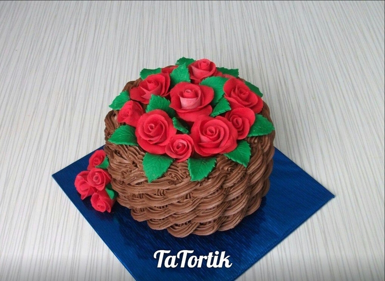 в начале своего тортоделанья делала корзину с грибами. кремовую.очень легко.