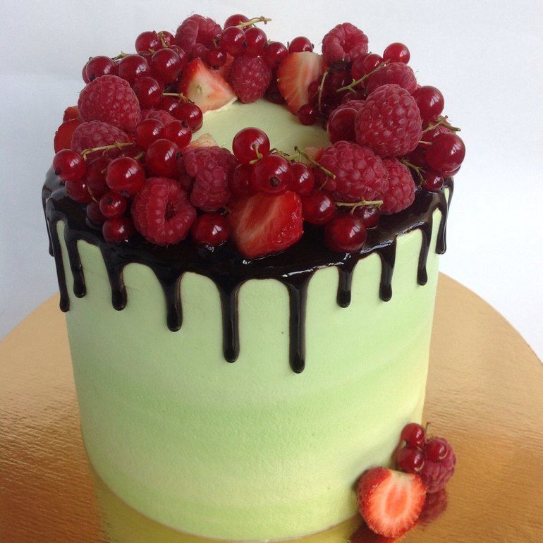 Украшение тортов кремом,шоколадом, фруктамиТортик весом 2 кг. Внутри шоколадные коржи по рецепту Энди шефа , крем на основе маскарпоне и много свежей клубники и малины.