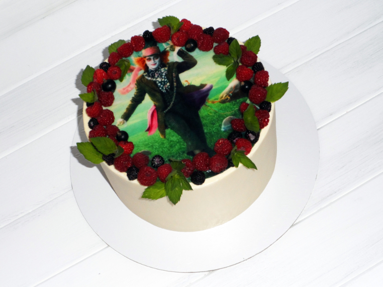 Украшение тортов кремом,шоколадом, фруктамиВанильный шифоновый бисквит, шокобисквит, апельсиновый курд, вишня, Крем Тафита, сырно-сливочный крем.