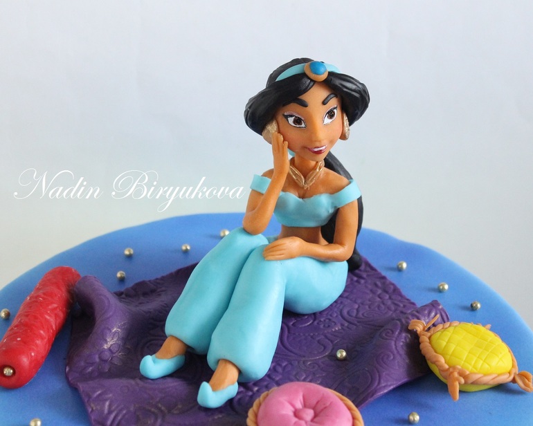 Очень красивый торт! Жасмин хорошенькая! Я вот еще и на подставочку под тортиком засмотрелась!