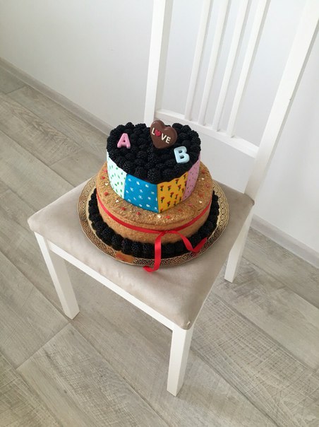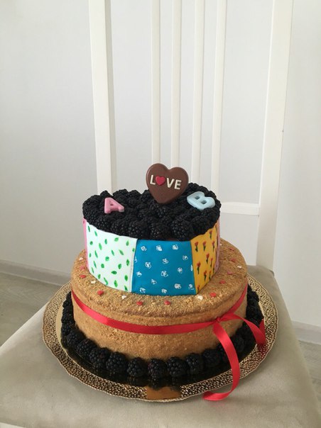 Украшение тортов кремом,шоколадом, фруктамиЭтот тортик я сделала детям на ситцевую свадьбу.