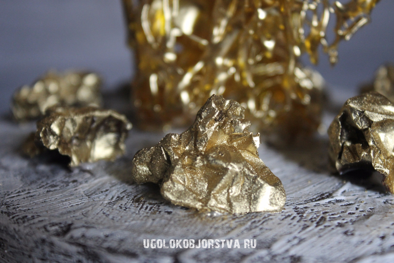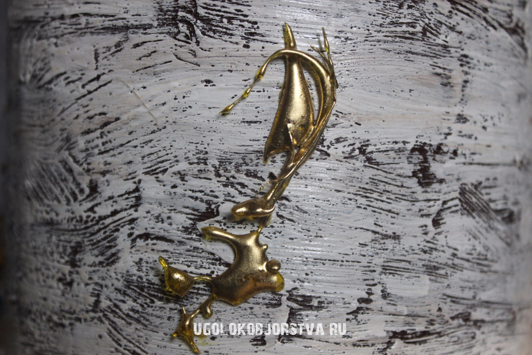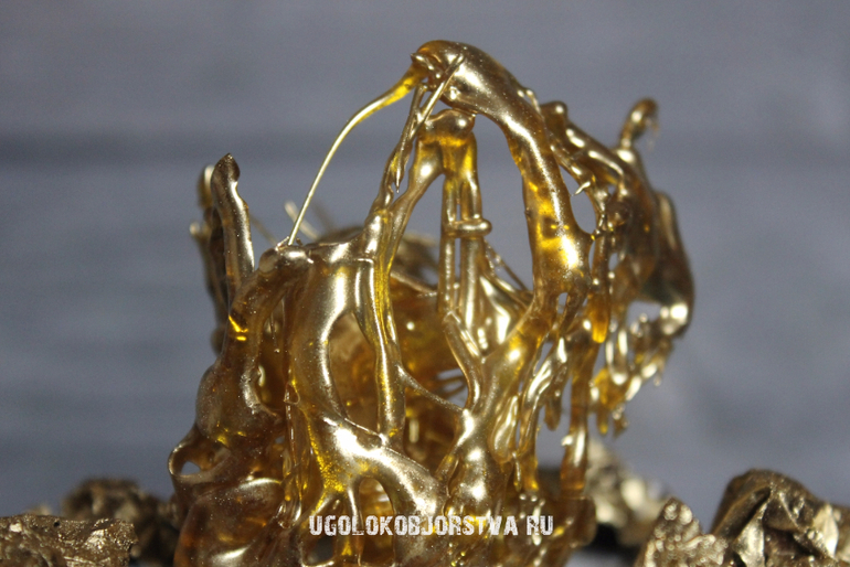 Когда расплавила - добавила немного желтой краски, а потом на застывший сдувала золото с кисточки))