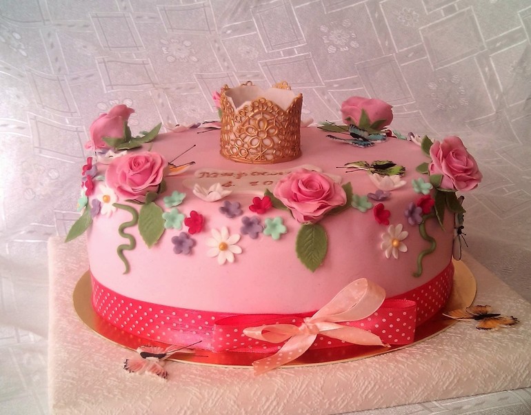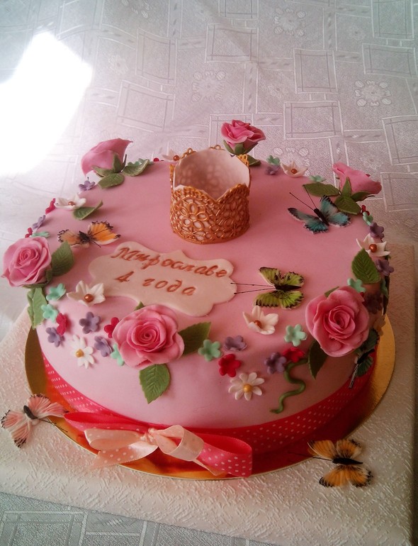Очень красивый тортик..и такой девчачий....любят девочки принцессно-цветочную тематику))))