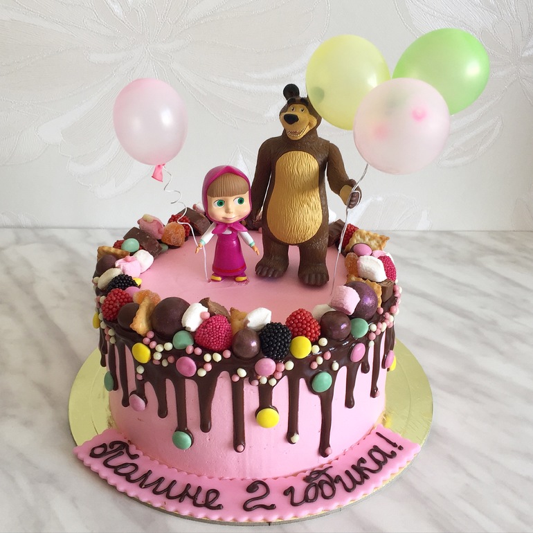 Тортик для малышки на двухлетие. Маша-Миша - игрушки (на удивление очень милые и хорошего качества)