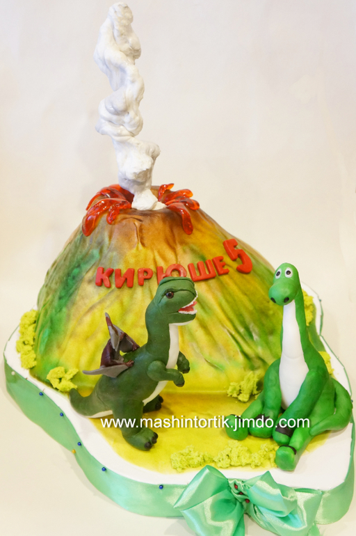 Торты детскиеТортик для нашей ББ-шечки Инночки, многомамочки :) Вес 4,8 кг, медовичок. Чтобы понять, откуда такие любопытные динозавры - прошу под кат :)) Вулкан еще слегка подсвечивался