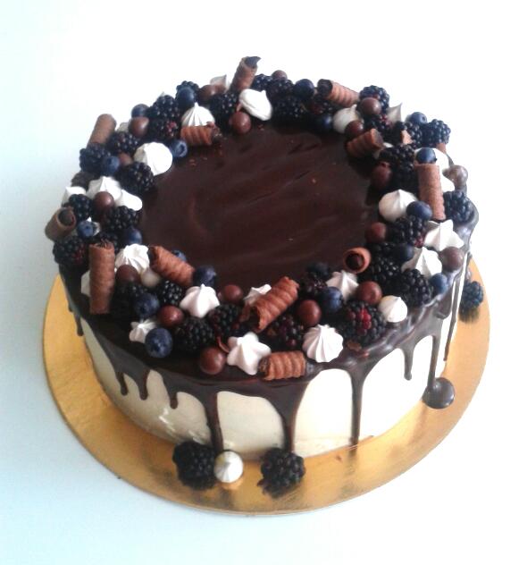 Украшение тортов кремом,шоколадом, фруктамиЯ думала, что невозможно испортить корж на 1,2,3, оказывается запросто-орехами)) а вообще кривенький, но он же просто так, на скорую руку выровненный и чемпопало украшенный.