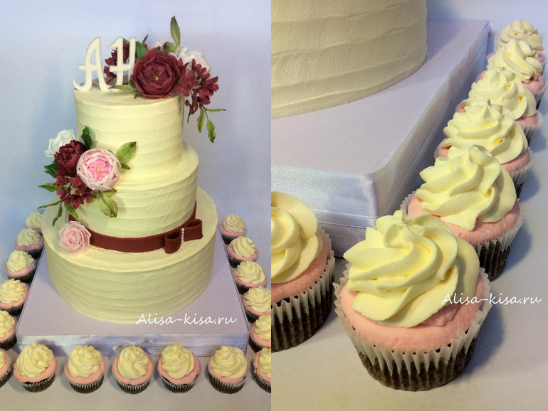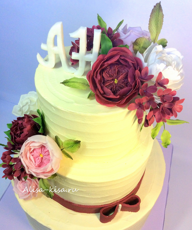 благородная марсала! Люблю очень этот цвет. Торт прекрасный! Но мне почему-то кажется что в 3 яруса проще мастичный сделать. Что скажешь? Или просто вопрос практики?