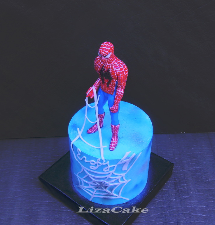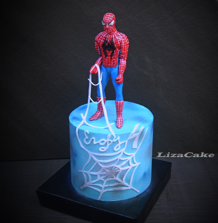 Писать об этом торте особо и нечего - на нем я реально плакала. Фигурку человека-паука просили в позе гопника (ну в смысле в привычной постерной позе - на корточках типа)..