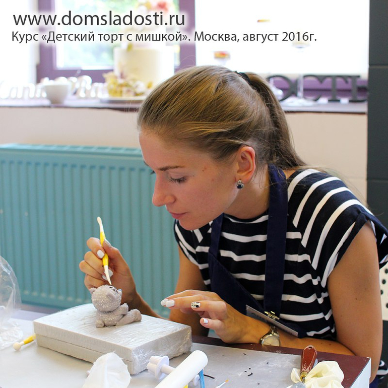 Лето, жара и отсутствие работающего кондиционера не помешали нам поработать с мастикой и даже слепить мишку Тедди, хотя признаюсь - было очень не просто.