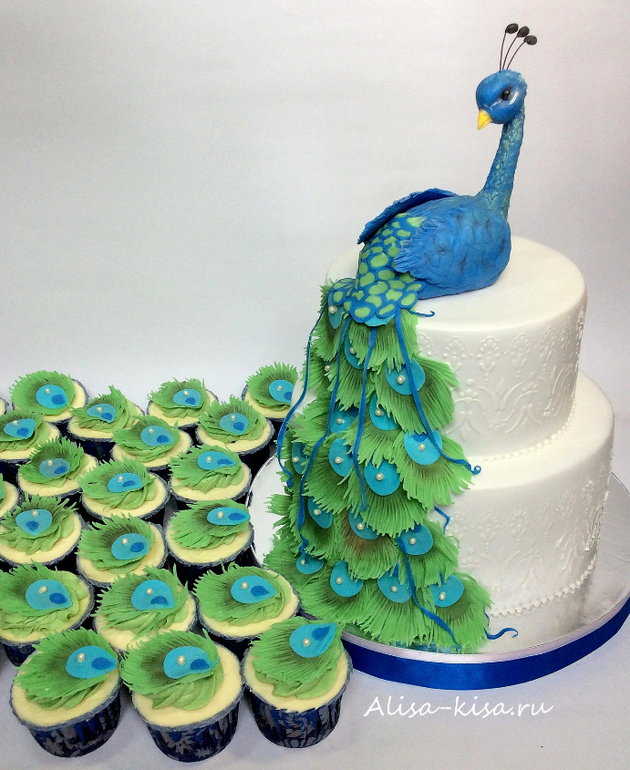 Классный торт. Увидела павлина, сразу вспомнила мадам с чужими тортами в портфолио)))) было дело...