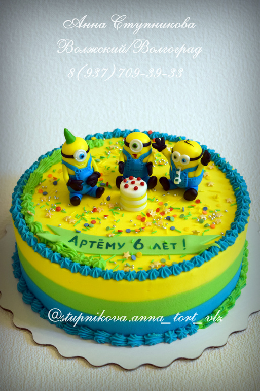 Украшение тортов кремом,шоколадом, фруктамиМиньоно-пати)) Сыну понравился тортик расцветкой. Когда наносила крем, смотрел как завороженный и сказал "Мама, какой класивый тольт!"