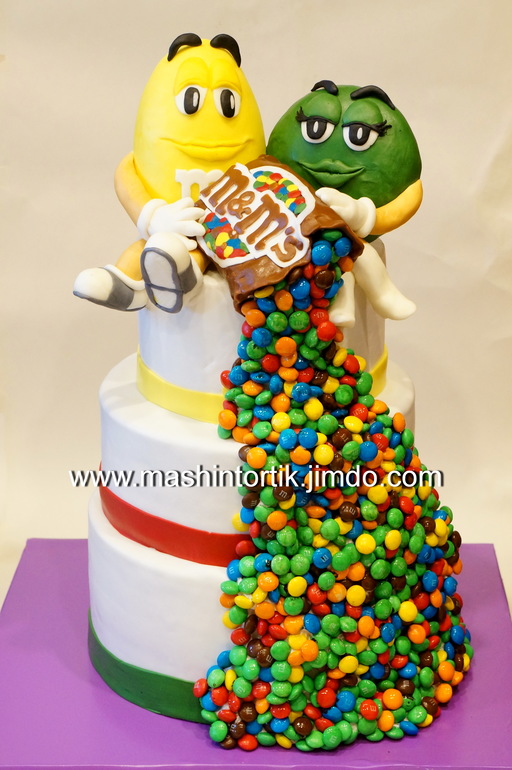 Торты детскиеНаконец-то и у меня есть тортик с Эм энд Эмс :)) спасибо нашей ББ-шечке многомамочке Ларисе :) Вес 12 с лишним кг. Для себя: внутри три шоколада внизу (24 диаметр, 11 высота, вес до покрытия 4,5 кг, два бисквита шнк и 1,3 кг шоколада), рафаэлло (22 диаметр - ошиблась формой, наверное, считала все правильно. 9 высота, вес 3,5 до покрытия), крем чиз по Энди - верхний (17 диаметр, 11 высота, вес 2,1 кг)