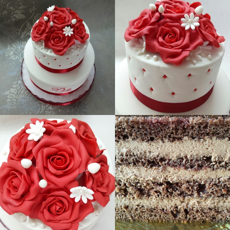 Торты свадебныеКлассический двухъярусный торт с двумя видами начинок - внизу песочный тортик с вишней, вверху- панчо. вес 5 кг. В маленьком тортике шоколадный бисквит и шок. крем, вишневая пропитка. Малыш всего 1,7 кг.