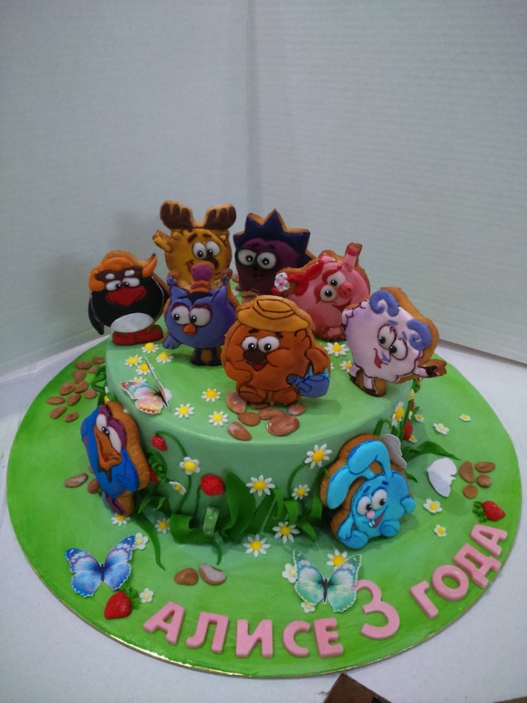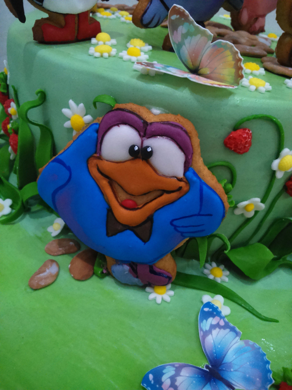 Торт сам тоже очень аляпистый,я предупреждала,что будет чересчур,но хотели всех девятерых.