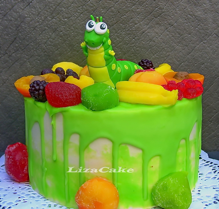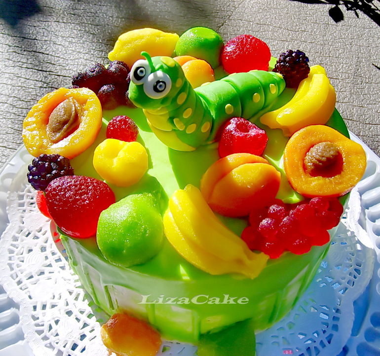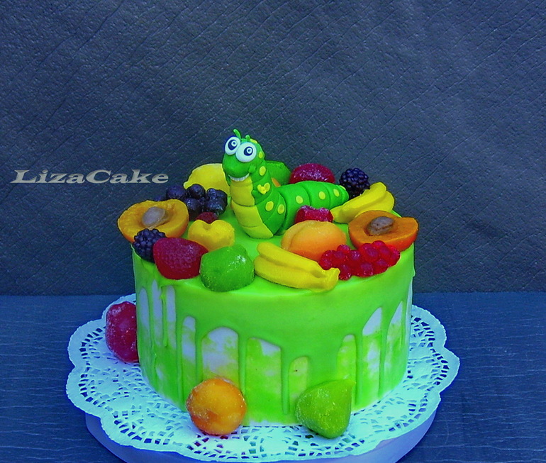 План в отношении торта был таков - посмотреть сильно ли выцветает краситель при нагревании.. промазать его аналогом кремчиза (пропорции на глаз из остатков), ну и в дальнейшем скормить гостям. Но план резко изменился, когда я зашла на ряд с конфетами и увидела этот мармелад - на фото он так себе, а в живую он очень и очень натурально выглядит