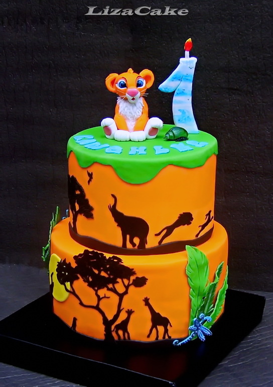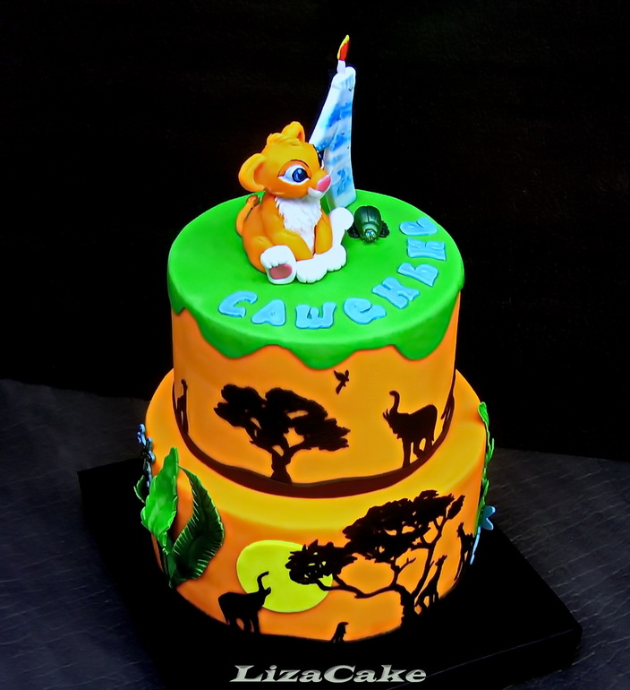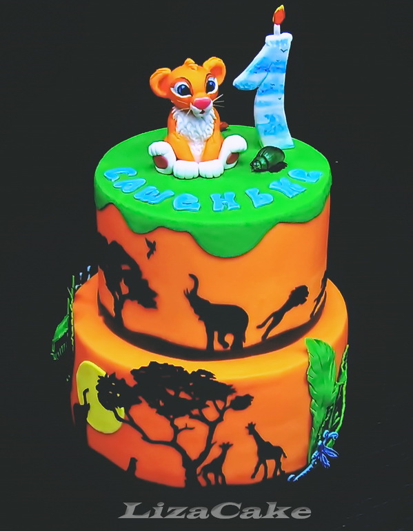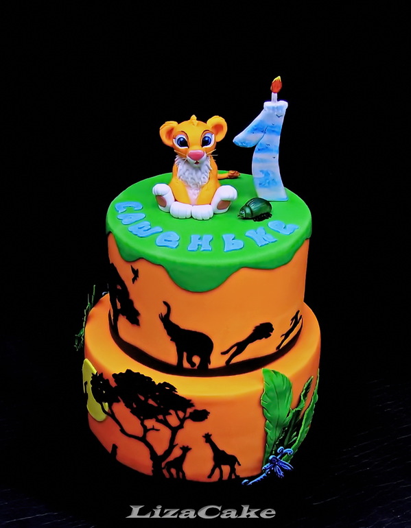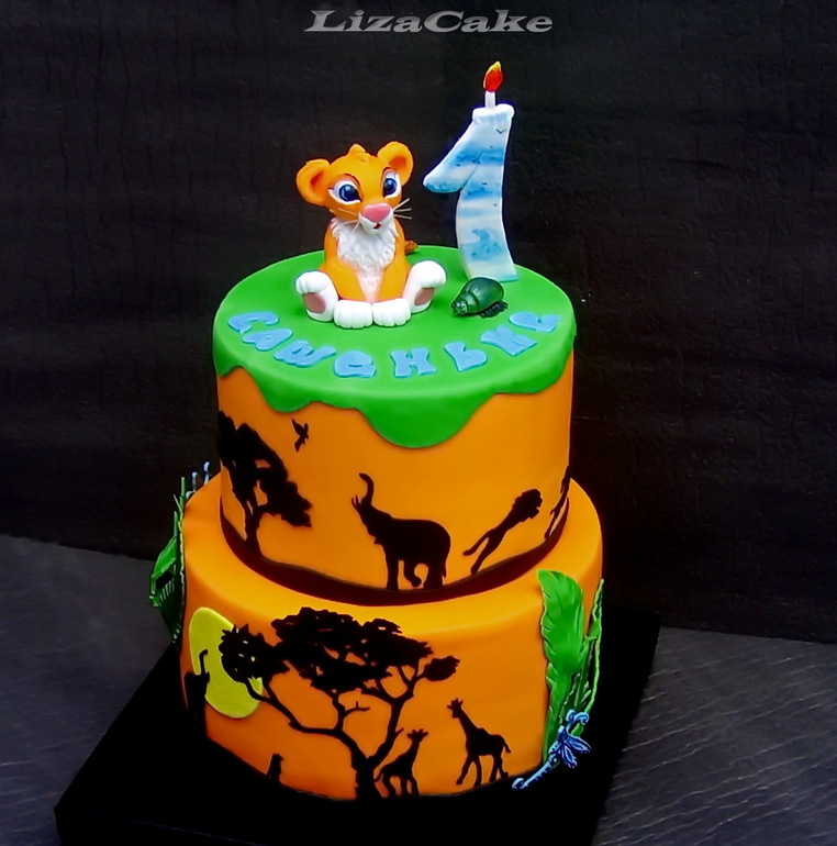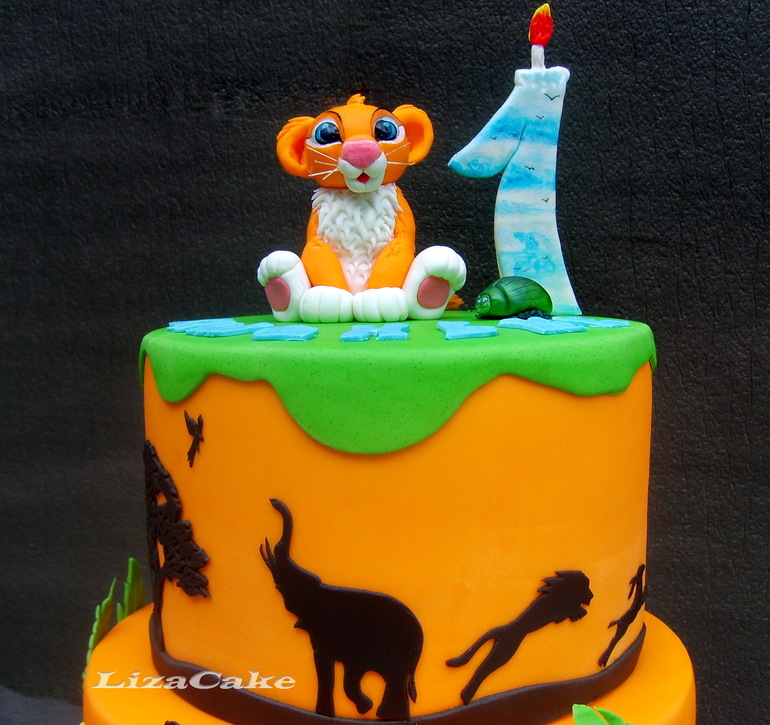 Торт был на субботу.. Пока несла его клиенту - сердце в горле стучало.. куча мыслей в голове "сейчас не понравится если, то извинюсь и деньги брать не стану вообще".. Фраза заказчицы "Какой хорошенький Симба.. Какой красивый торт" чуть не заставила меня - атеиста - перекреститься)).. Выдохнула..