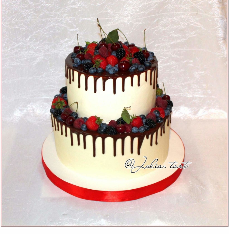 Украшение тортов кремом,шоколадом, фруктамиНичего нового, конечно, но мне он нравится, получился ровненьким, высоким))