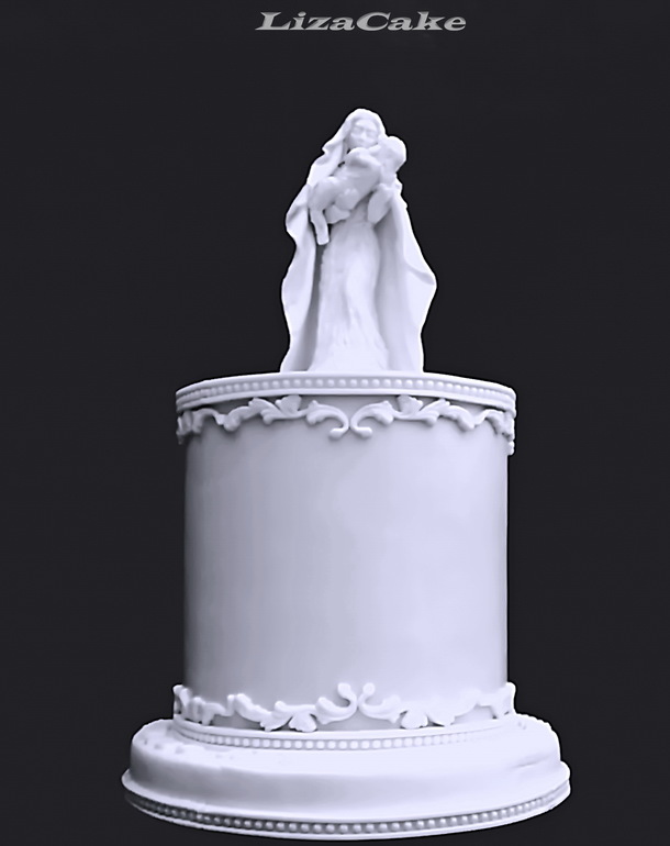 .. но в череде трех тортов (пятница, суббота, воскресенье) он выпадал последним и силы после трех суток без сна были на исходе. Фигурка на торт делалась урывками в свободное время, поэтому к субботе к вечеру она уже была готова, но без "правильного" торта она была бы невнятной и неуместной. Поэтому собрав абсолютно все силы и резервы я взялась за торт.. Основное, чего я хотела достигнуть в нем - идеальной выровненности и максимально возможной высоты.