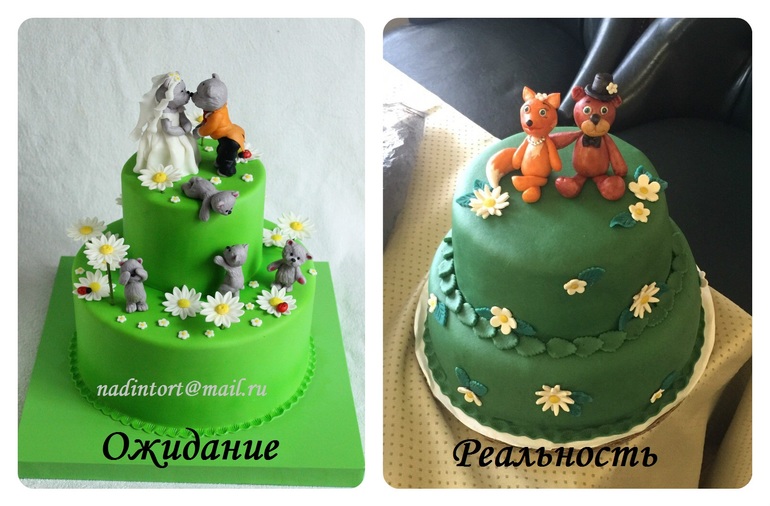 Введите в гугле "торты ожидание и реальность", много картинок. вот одна из ссылок http://sixbee.ru/bez-rubriki/svadebnye-torty-kakimi-ih-zakazyvali-molodozheny-i-tot-uzhas-kotoryj-oni-poluchili/