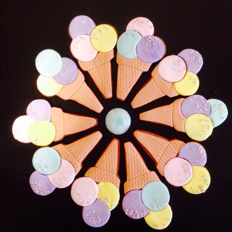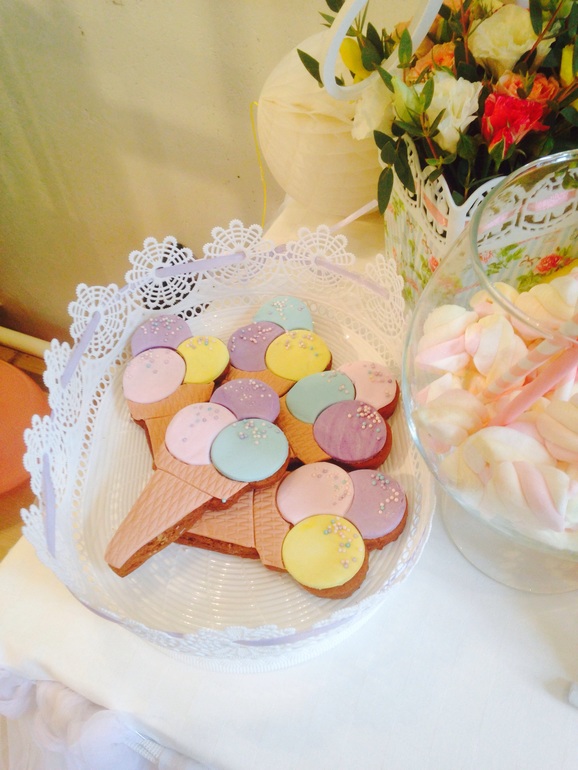 ПряникиДушистые имбирные прянички в форме мороженого к сладкому столу в указанной тематике.