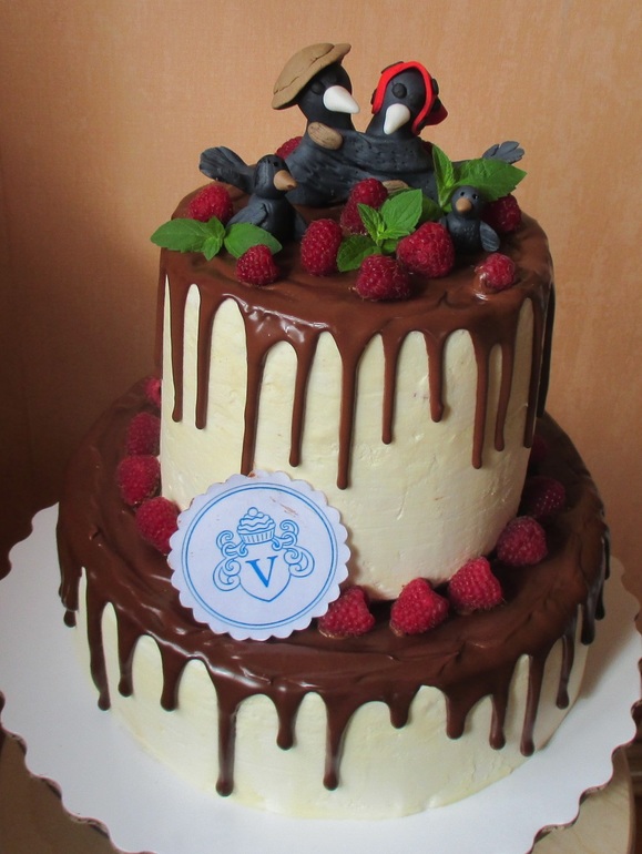 А почему птицы темные? Это задумка такая или что?..Ягодок маловато на нижнем ярусе..Как то немного не выразителен тортик..Я бы скажем если птички темные..то добавила бы и ягод немного темных и светлых ..н уне хватает некоей торжественности момента..Название такое торта 10 лет счастья..Можно было бы чуть прибавить фантазий..Эмблемк увообще можно было сделать чуть меньше размером..Неровности глазури закрыть ягодами..Птицам сделать глаза радужные..ну темновато..Мне не совсем понятна как бы задумка торта.Но возможно он оочень вкусный внутри) Фантазируйте и будет все отлично..Должно получиться на 5 обязательно!)