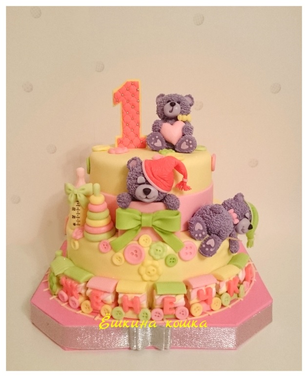 Торты детскиеУже делала такой для мальчика в серо-голубых тонах, а тут заказали такой же для девочки, но цвета другие.Повторюшки всегда делать легко, чем на ходу придумывать что-то. Но тут затык был с цветом, что какого цвета сделать. И я открыла для себя способ сэкономить время на раздумываниях в процессе декоририрования.