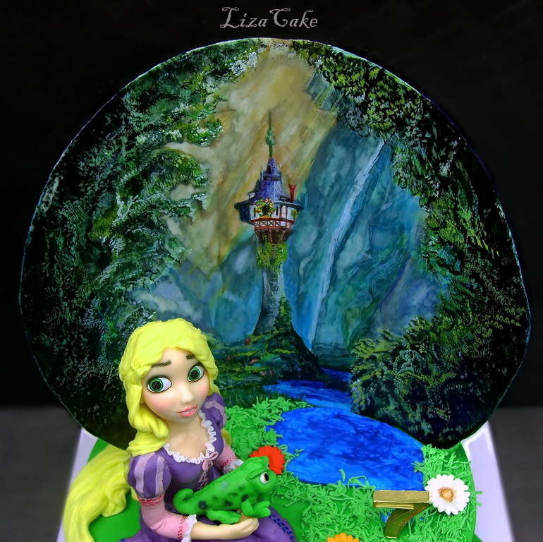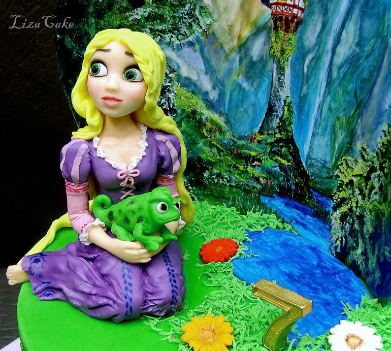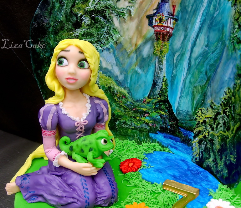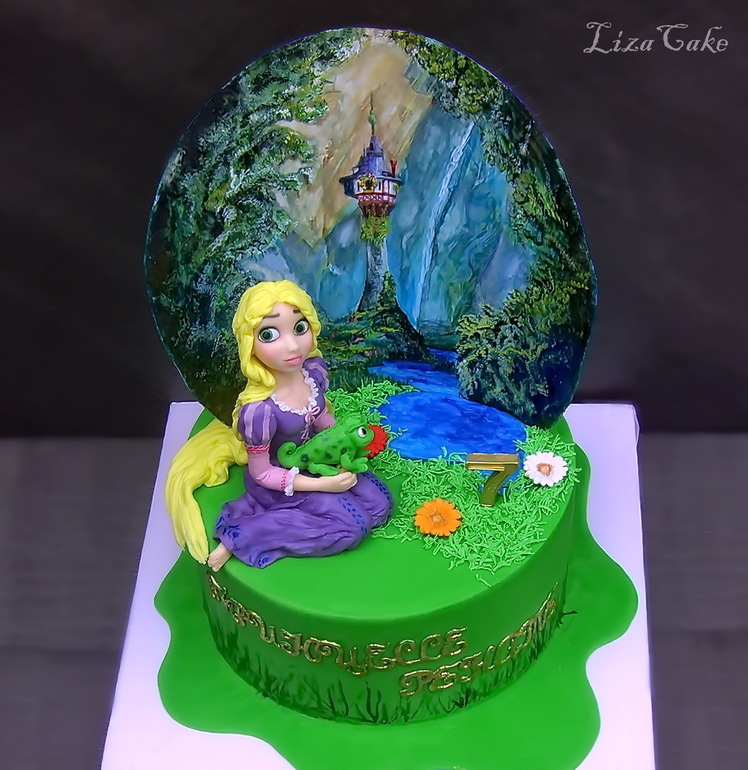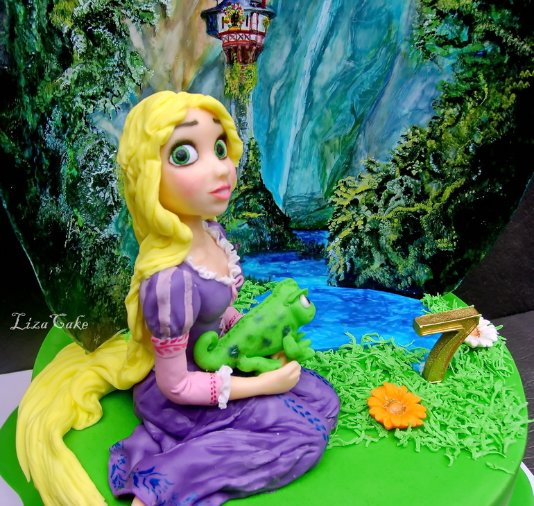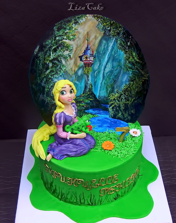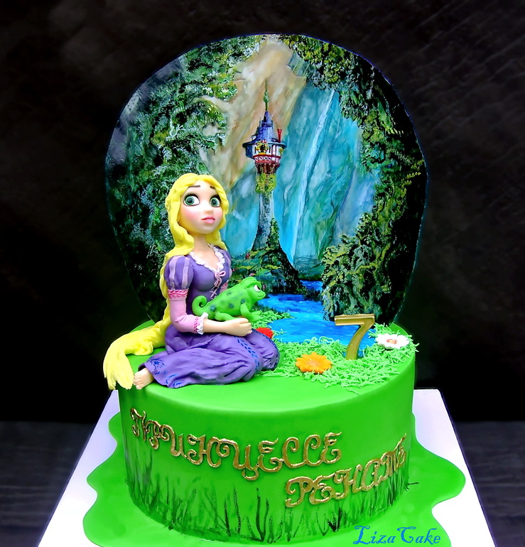 На счет "определились с дизайном" клиент явно погорячился - разброс шел от Китти до Эльзы. Китти делать не хотелось, на Эльзу в полный рост не было времени.. Остановились на Рапунцель - эту хоть посадить можно не в ущерб композиции.