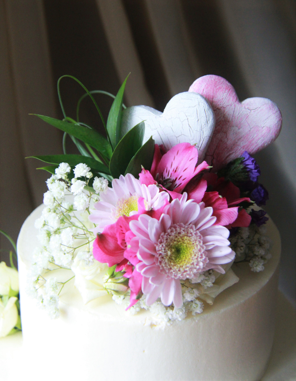 Сразу пишу, что цветы помыты как следует, некоторые в капсулах и некоторые обернуты пищевой пленкой и вставлены в торт.