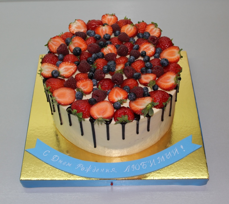 Украшение тортов кремом,шоколадом, фруктамиМолочная девочка "зебра", сметанно-сливочный крем, клубника, голубика, малина, 3кг