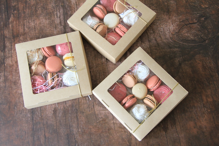 Зефир ванильный, зефир на черной смородине, макарони: манго, клубника, шоколад