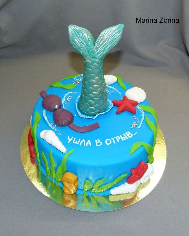 девушку которая выходит замуж друзья зовут русалкой. разговор о заказе торта начался со слов "нам нужен торт с русалкой" а в итоге получилось это :)