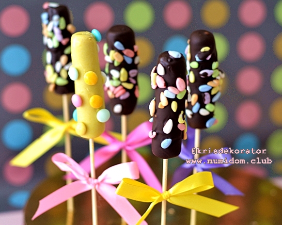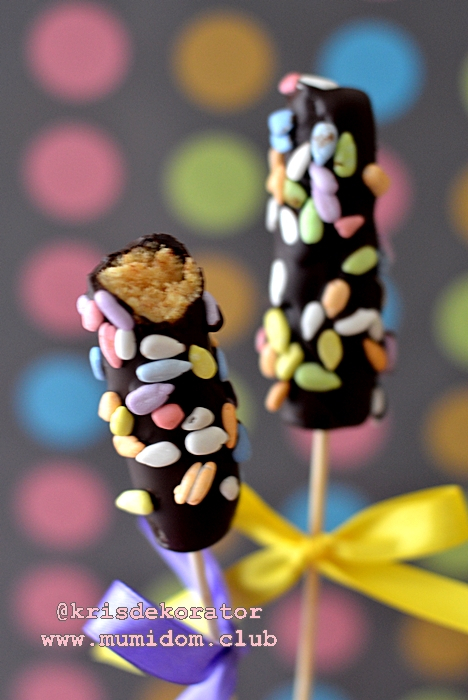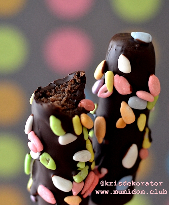 Или трубочка из , бисквитной крошки и крема, покрытая шоколадом и хрустящими посыпками (конфетками, орешками, семечками в глазури).