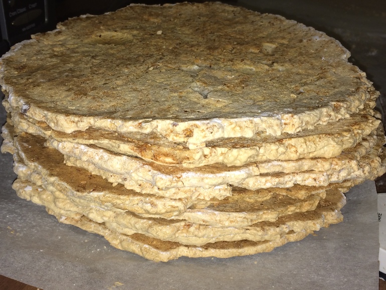 В Эстерхази коржи не должны быть сухие, они мягкие внутри. Это же по сути дакуаз. Из духовки их достаешь мягкими, потом, в процессе остывания они подсыхают чуть-чть, но совсем не как безе не до хруста. Посыпать пудрой прописано в базовом рецепте.