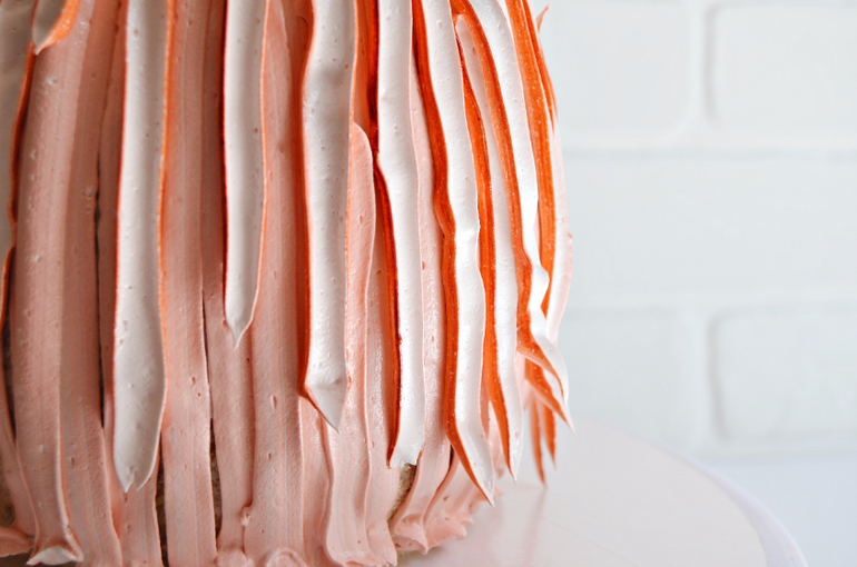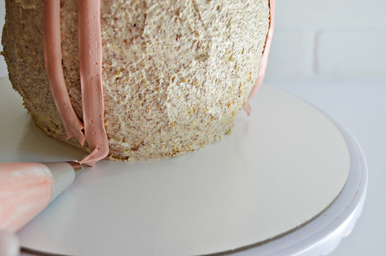 Выполните линию до основания торта, перестаньте нажимать на мешок с кремом.