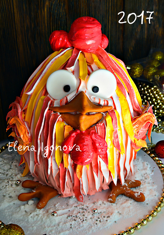 2017й - это год Красного Огненного Петуха. Я уверена, что он будет наполнен яркими событиями, плодотворным и очень интересным. А чтобы Петух был к нам особо благосклонен, давайте встретим его чаем с вкусным и красивым тортом, на него похожим. Предлагаю Вам воспользоваться идеей и методикой создания кремового торта - Петуха. Позитивный, яркий и простой в выполнении, он точно не оставит равнодушным детей и даже взрослых.