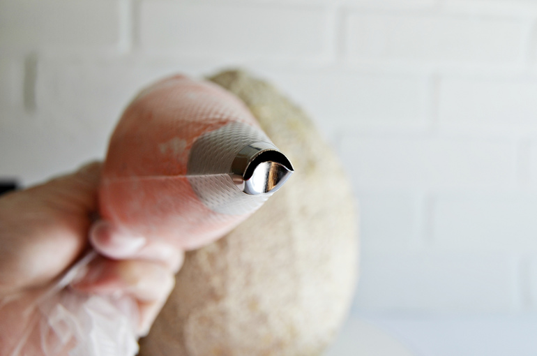 Расположите насадку улыбкой вверх, как показано на фото. Линия крема будет вогнутая.