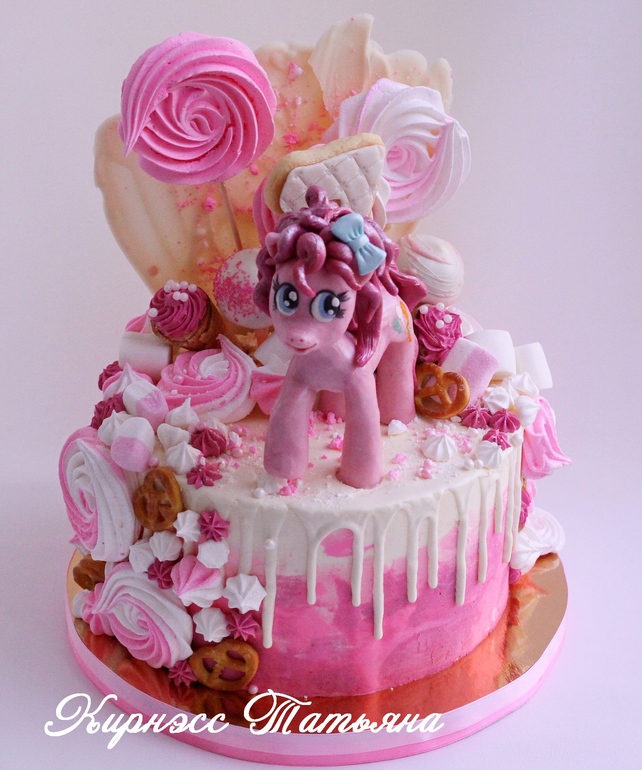 Недавно выкладывала сладкий стол в стиле Пинки Пай. А это тортик к нему.