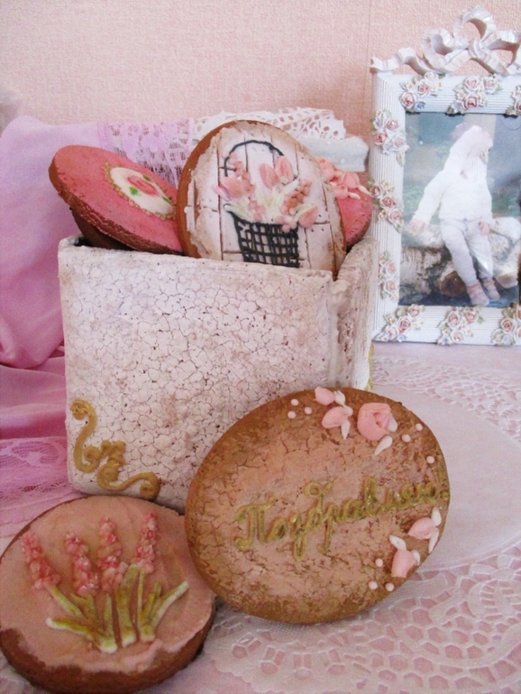 Здорово,а мне пока не попался случай сделать что-нибудь с кракелюром,все время заливка. На себя вечно пряников не хватает,а специально тесто делать конечно лень, так и сижу до следующего заказ каждый раз. Лентяйка я