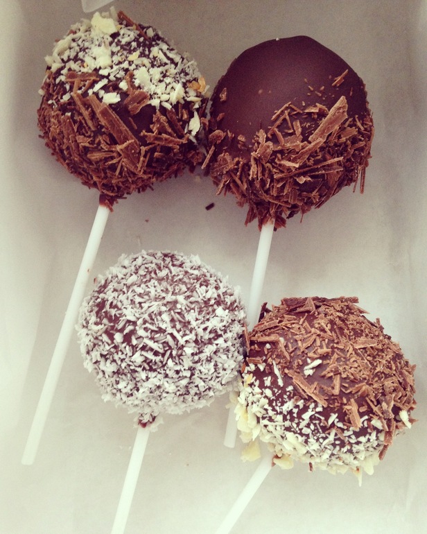 Палочку обмакните в шоколад где-то на 1-1,5 см, а потом вставьте ее до середины шарика, при этом шарики должны быть хорошо охлаждёнными. После этого шарики с палочками подержите перед покрытием шоколадом в морозилке минут 15-20. За это время шоколад зафиксирует палочку внутри кейкпопса, и его поверхность будет настолько холодной, что после покрытия шоколад моментально застынет.