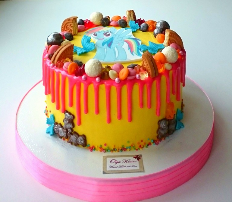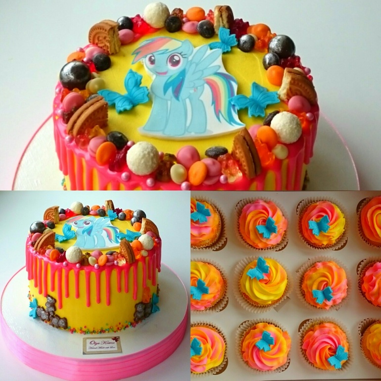 Украшение тортов кремом,шоколадом, фруктамиКремовый тортик и капкейки в одной цветовой гамме для любимой доченьки на День рождения!