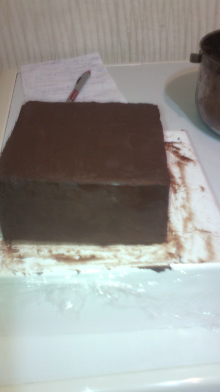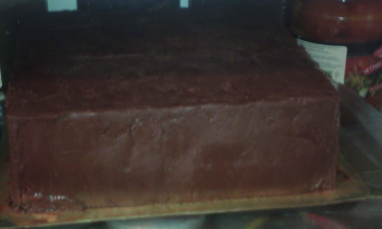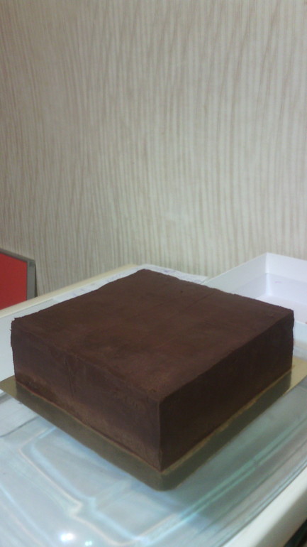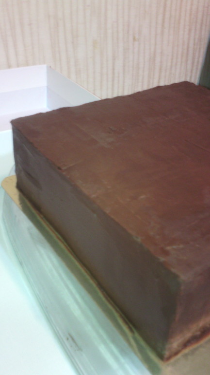 Проба пераРовняла-ровняла... Ровняла-ровняла... Думаю, если нанести еще один слой ганаша, у меня получится не торт, покрытый ганашем, а ганаш с кусочком торта внутри))))