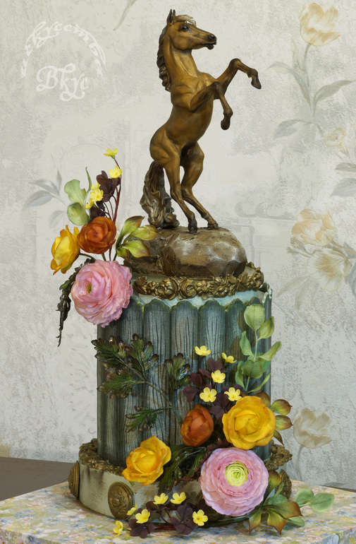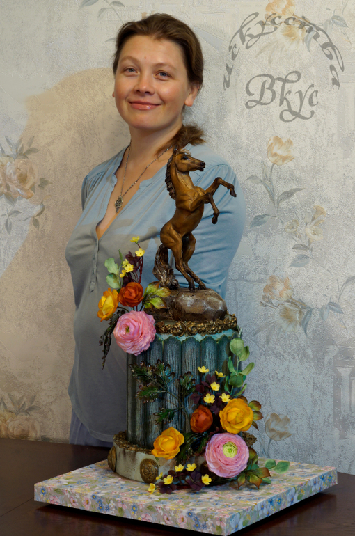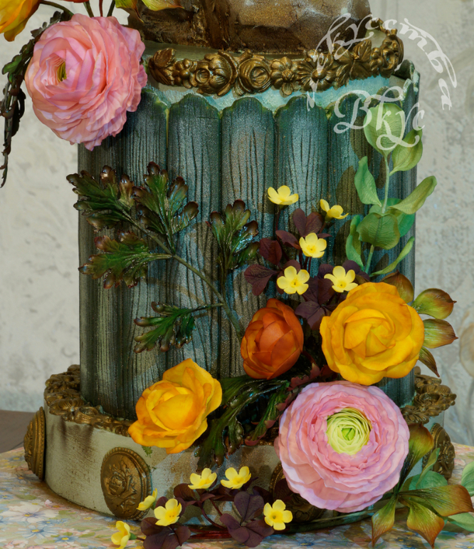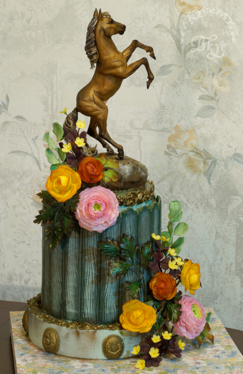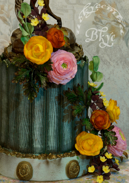 Ну вот, коняшку поглядели... А вот и тооооорт))))))) Все комплименты мира твои, чес слово))) Листья у цветов тоже съедобные? (ну глупый так глупый вопрос, выглядят, как искусственные, не в плохом смысле, а в хорошем, что вот смотришь и не верится, что это все съесть можно!!!!!) А чем эффект старины и камня делала? Кисточкой и красителями??