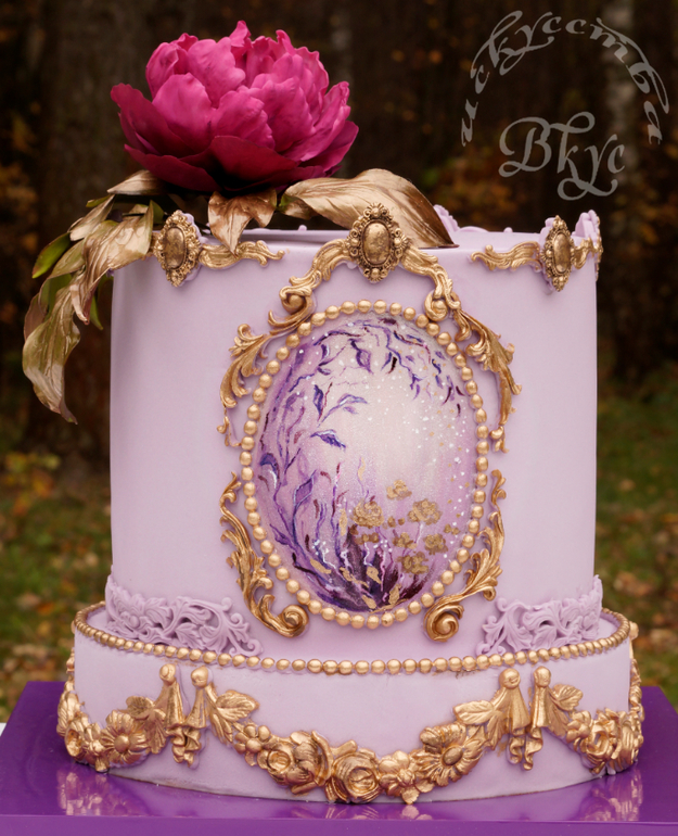 Танечка, очень нежно и величественно. Шикарный торт! Для меня - эстетическое наслаждение разглядывать мелкие детали, элементы, а уж про пион - надо же какая красота! Листья словно высохли, скукожились, а цветок живет))) Талантище!!!