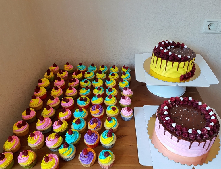 Украшение тортов кремом,шоколадом, фруктамиторты ровненькие были, а фото исказило, что-то вышли не очень ровными,