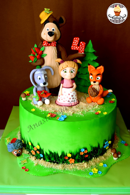 Маша и медведь..очень красивый торт ) позитивный, и необычный на мой взгляд )), все герои такие милашки, супер!
