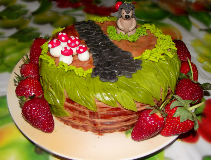С молочной мастикой пока на вы... что то не нравится она мне в лепке! Ёжик и грибочки из покупной... все остальное молочная... Должна была быть еще Маша с медведем, но мне жалко было тратить покупную, а из молочной не получилось(((( потом думала корзинку с цветами, цветы не даются мне из молочной....пол корзинки сделала... налепила))) Ну как то так...расстроилась конечно что не получилось того чего хотелось... покупная мастика конечно кайф...