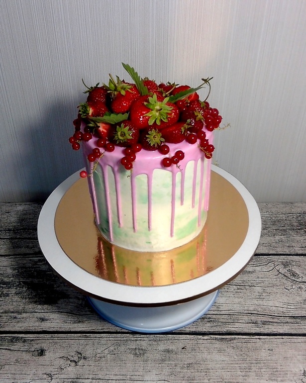 Украшение тортов кремом,шоколадом, фруктамиВторой мой торт с фруктами, подтёками. Этот уже на заказ. Одно из двух - либо я себе льщу, либо они у меня аккуратнее стали получаться.