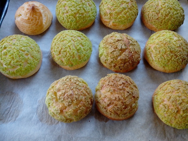 ) испечь вот эти модные и чудесные пироженки. Всё шло хорошо до тех пор, пока они не оказались в духовке. Точнее, даже не сразу я начала напрягаться. Делала по видео рецепту с Ютуб. Сначала всё шло отлично, они поднялись, увеличились почти втрое(хорошо, что тут у меня ума хватило отсадить их подальше друг от друга).