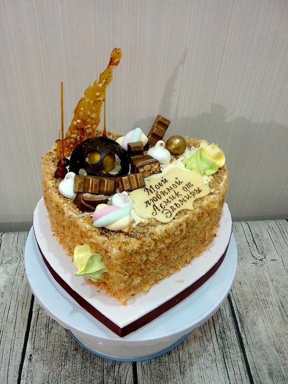 Когда мне девушка написала, что нужен торт в виде сердца из "самой вкусной начинки", я никак не предполагала, что это будет наполеон))