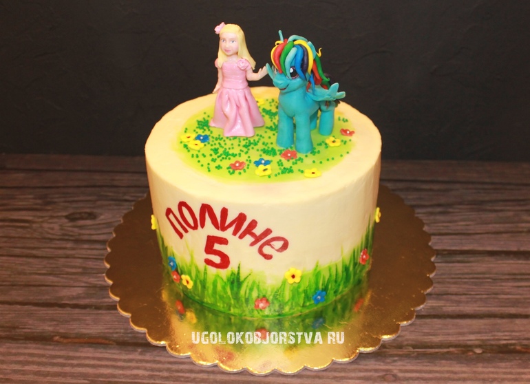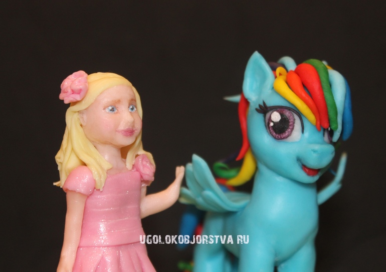 Именинница захотела тортик с пони Радугой Рэйнбоу Дэш и девочкой в розовом платье и со светлыми волосами)) вот что получилось..